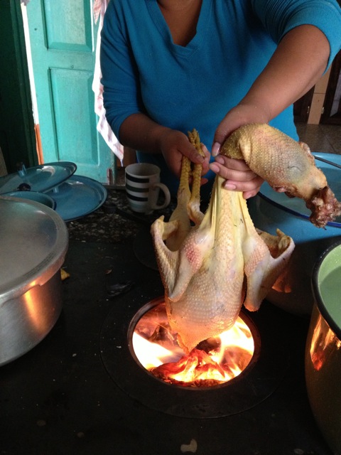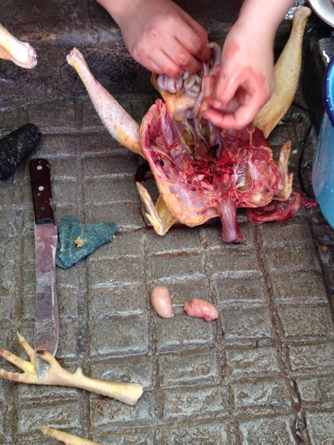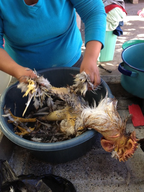 ペピアンを作るために、鶏の解体ショーのはじまりはじまりー。