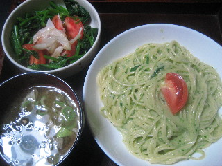 ほうれん草のパスタ&サラダ&みそ汁?