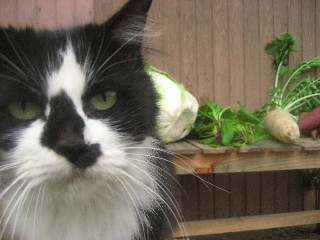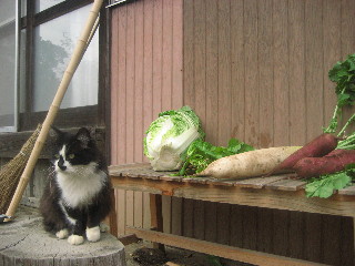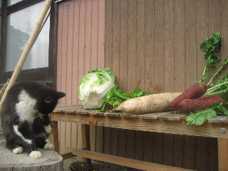 叩き起こして、野菜と写真。ん?むすっとしてる?
