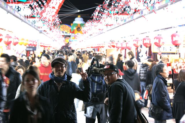 舟乗り場から、歩いて2分もすると、浅草寺の雷門の前に。夕方になっても、人通りは多くにぎわいがある仲見世を歩く。昼間と違い、ネオンに輝いた商店も、また一味違っていい雰囲気。浅草寺に到着し、自分は喪中のため、お参りは出来ないというと、「おみくじ」は大丈夫といわれ、なぜか納得し